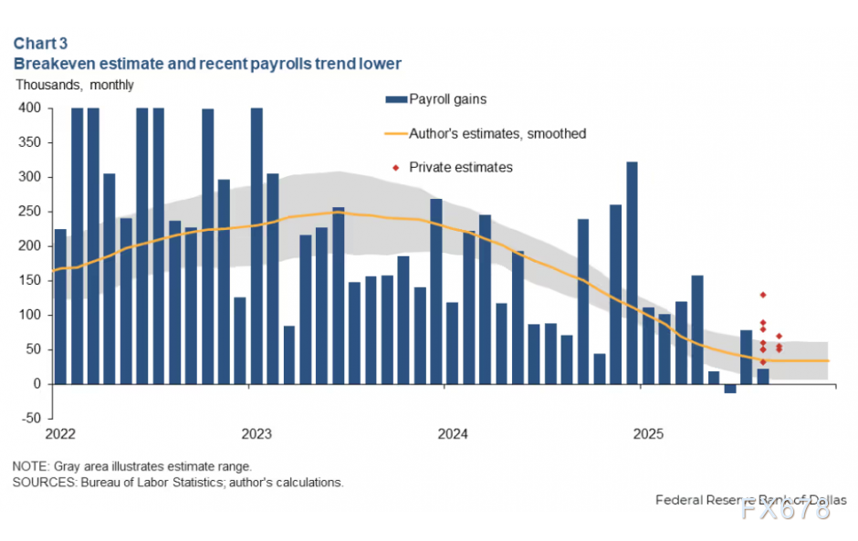 (图:就业平衡点与增长趋势持续下修)   这一数字也远低于维持失业率稳定所需的“损益平衡”水平——高盛估计约为每月7.5万人。值得注意的是,这还只是平衡估算区间的上沿。达拉斯联储经济学家Anton Cheremukhin的估算更为保守,认为平衡水平仅在3万人左右,远低于两年前约25万的估计值。   问题的关键在于,较低的就业增长平衡水平虽然有助于抑制失业率过快上升,但也掩盖了劳动力市场内在的脆弱性。在这种紧绷状态下,任何微小的负面冲击都可能让本就微弱的净就业增长转为负值。这种脆弱性使得劳动力市场对外部冲击的抵御能力大幅降低。