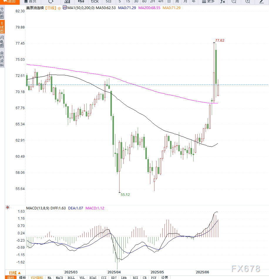 周二国际油价回落之后再次上涨,主要受到伊朗与以色列冲突升级以及美国方面呼吁“全面撤离德黑兰”的影响。伊朗作为亚洲国家重要产油国,其供应中断的风险令市场重新定价地缘局势对油市的冲击,推动布伦特和WTI双双上行。此前有关缓和信号一度令油价回落,但局势再度恶化打破市场短暂的乐观情绪。